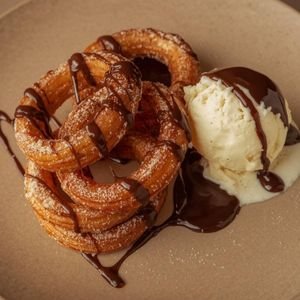 Churros loops drizzled in biscoff sauce, topped with biscoff crumbs, served with a scoop of Baskin Robbins ice cream of your choice.