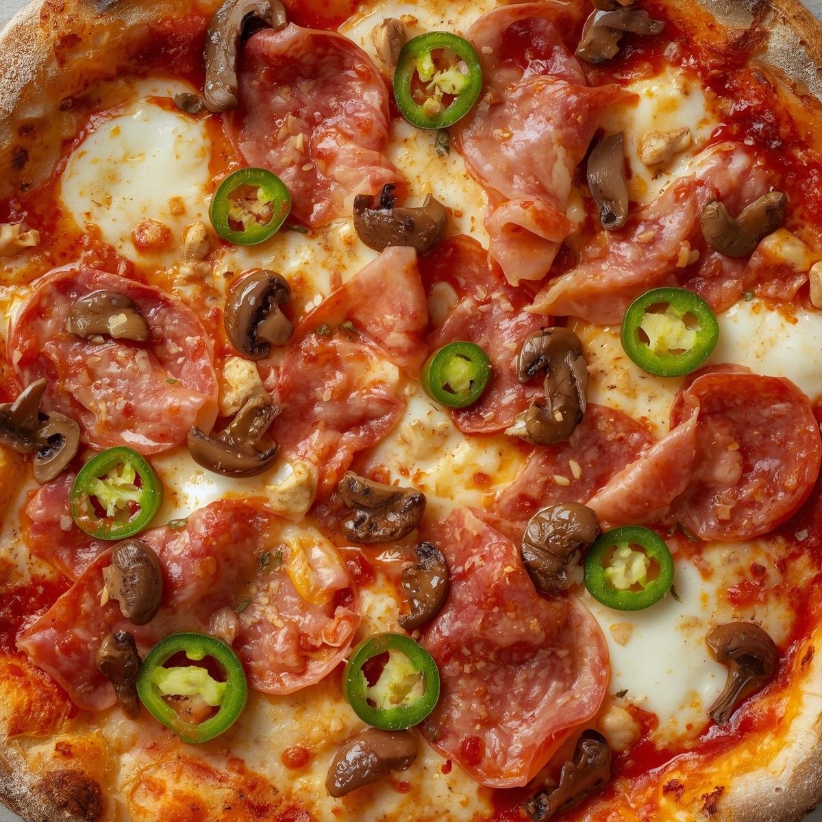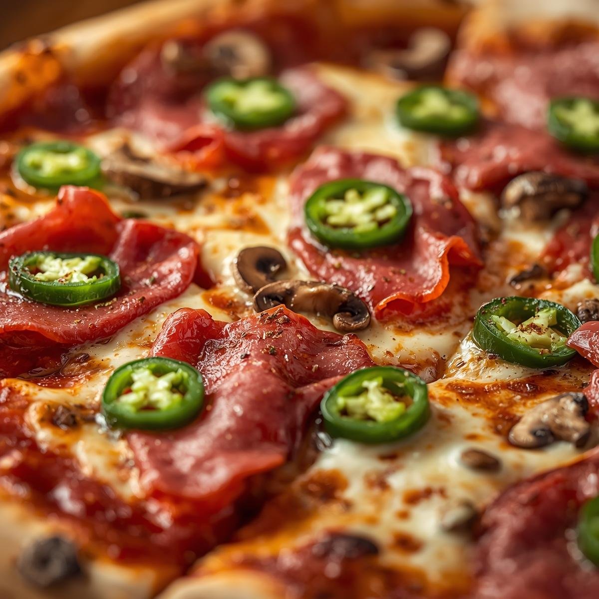 Salami ,Jalapeno,Mushrooms-Mozzarella,Tomato Sauce