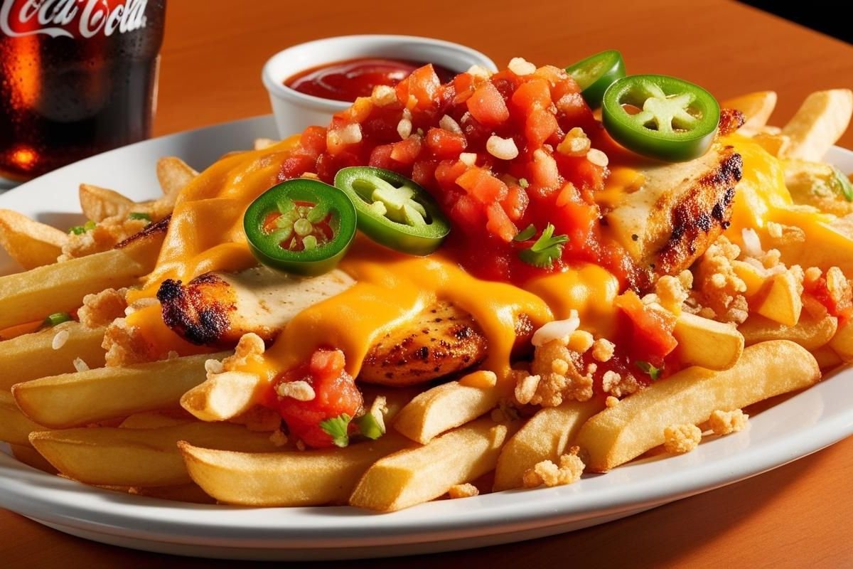 Fries loaded with cheese Sauce, tomato salsa and Jalapenos