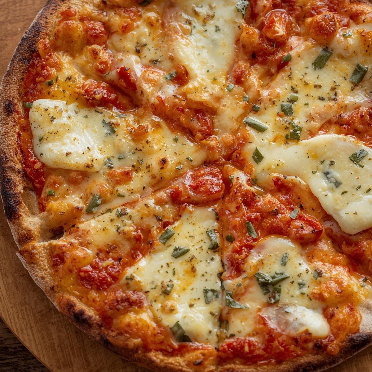 Emental-Chedder-Gorgonzolla,Mozzarella and tomato sauce